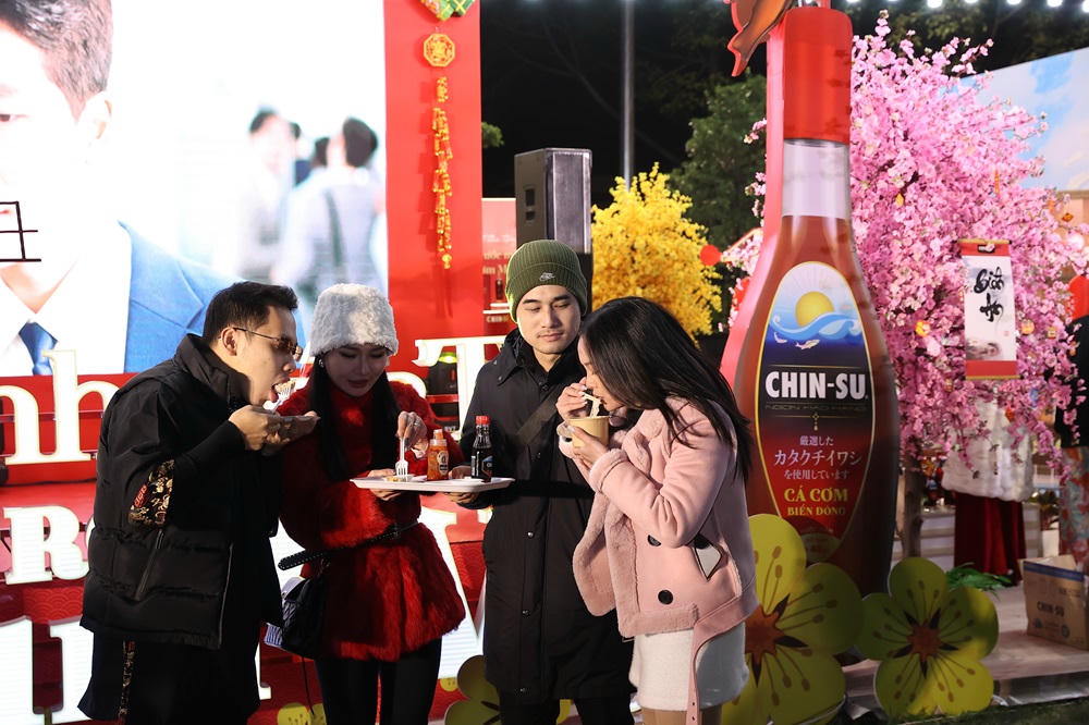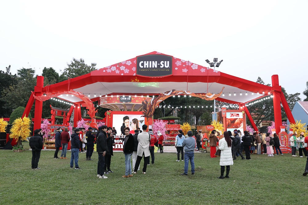 Năm nay, gian hàng CHIN-SU mang đến nhiều hoạt động thú vị kết hợp trang trí đặc sắc, đầu tư thiết kế không gian Tết hoành tráng để tạo nên điểm nhấn mới lạ thu hút người dân và du khách đến chụp ảnh và check-in cùng lễ hội. Tại đây, du khách còn được tham gia hoạt động trải nghiệm, dùng thử các món ăn vô cùng hấp dẫn trong tiết trời đậm chất Tết phong vị Bắc Bộ. Các sản phẩm như Bộ gia vị CHIN-SU Nhật Bản, Nước mắm CHIN-SU, Tương ớt CHIN-SU, đặc biệt là bộ Xốt nhà hàng CHIN-SU được trưng bày đẹp mắt để giới thiệu tới khách tham quan.