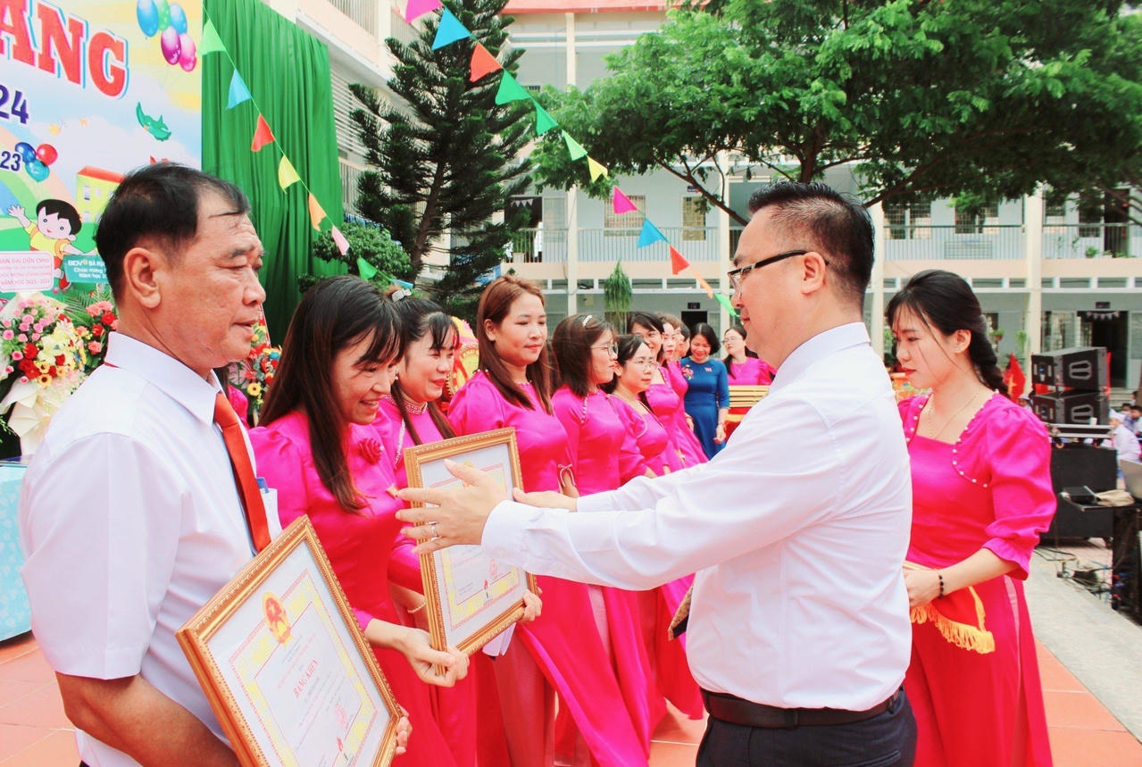 Ông Hoàng Vũ Thảnh - Chủ tịch UBND TP.Vũng Tàu tới dự và trao Bằng khen cho những GV đạt thành tích xuất sắc trong công tác của Trường TH Võ Nguyên Giáp, TP Vũng Tàu. |