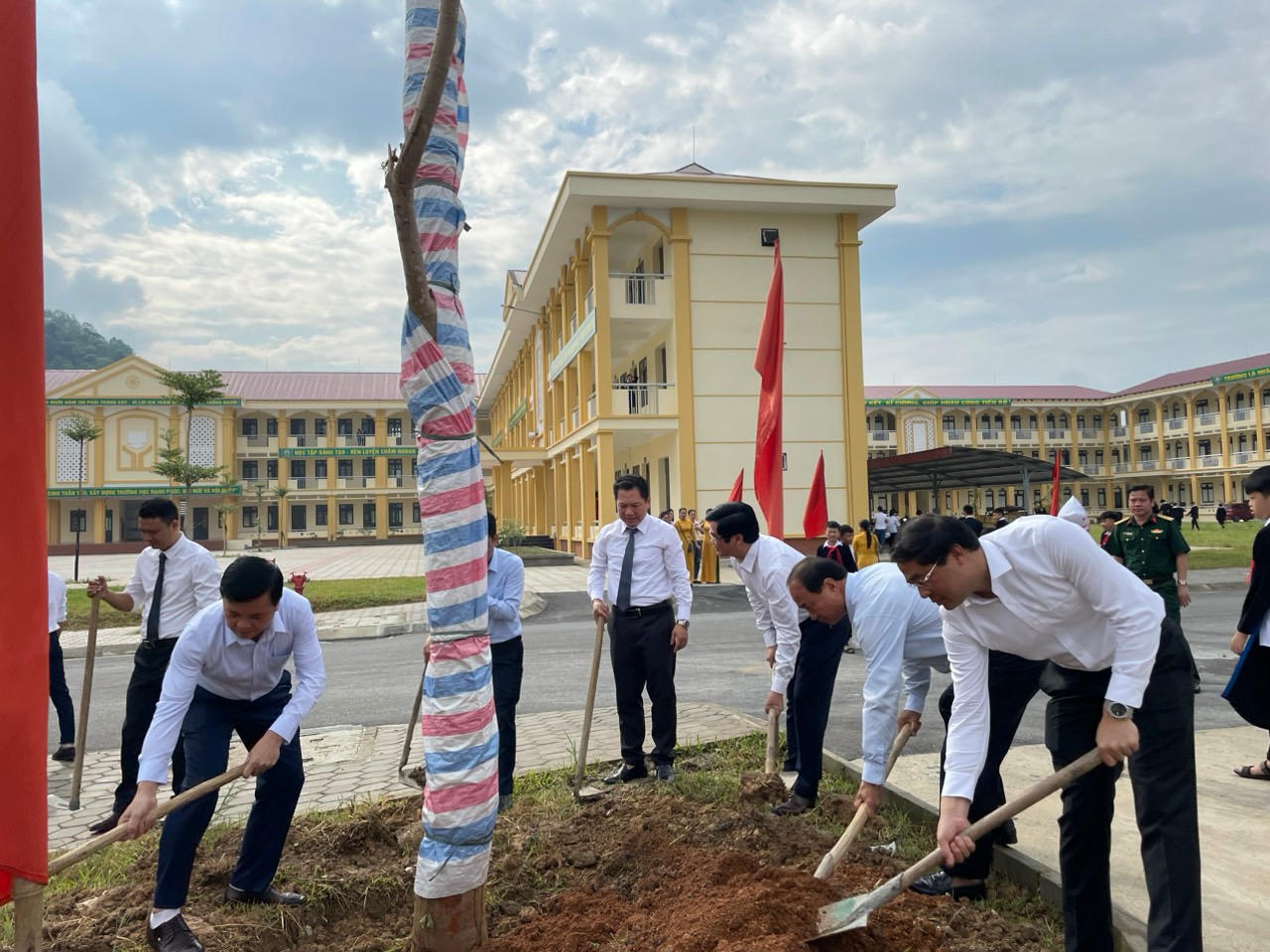 Lãnh đạo tỉnh trồng cây tại trường THPT Dân tộc nội trú tỉnh Lào Cai. |