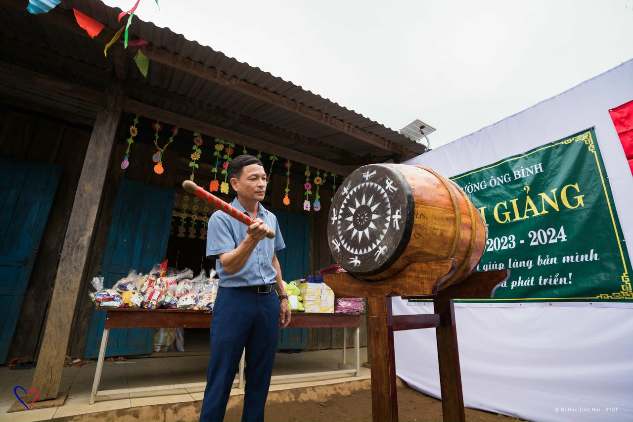 Bí thư tỉnh ủy Yên Bái đánh trống khai giảng năm học 2023 - 2024 tại trường PTDT bán trú TH&THCS Hồ Bốn. Ảnh: Thanh Thúy. |