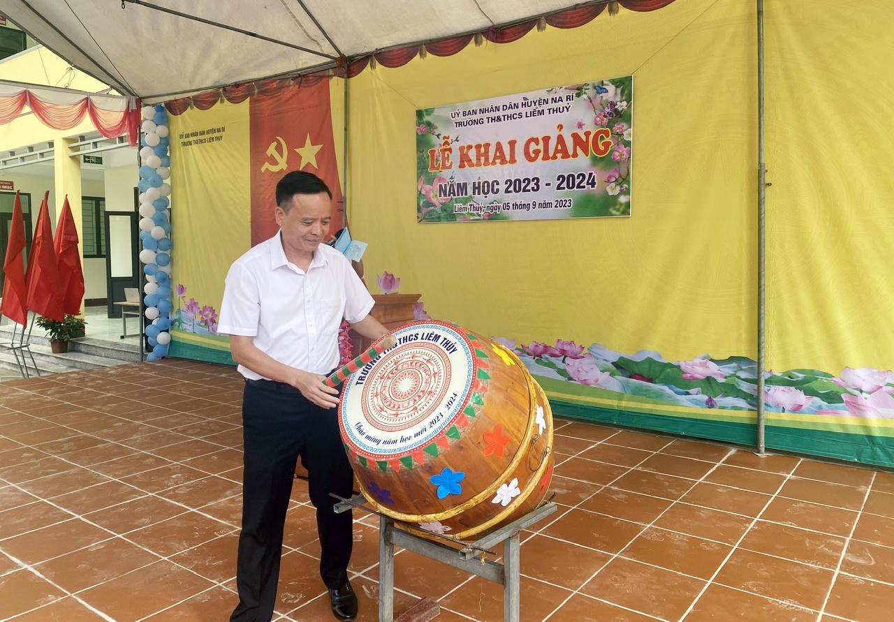 Thay mặt lãnh đạo tỉnh, đồng chí Đồng Văn Lưu, Phó Chủ tịch HĐND tỉnh đã đánh trống khai giảng năm học mới và tặng quà động viên thầy và trò Trường Tiểu học và Trung học cơ sở Liêm Thủy, chúc nhà trường tiếp tục phát huy thành tích đạt được, hoàn thành xuất sắc nhiệm vụ năm học 2023 - 2024.