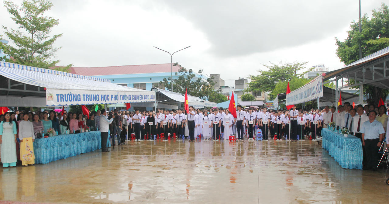 Lễ khai giảng của Trường THPT Lý Thường Kiệt, thị xã La Gi, Bình Thuận, có sự tham dự của Đại tá Lê Quang Nhân - Ủy viên Ban Thường vụ Tỉnh ủy, Giám đốc Công an tỉnh Bình Thuận.