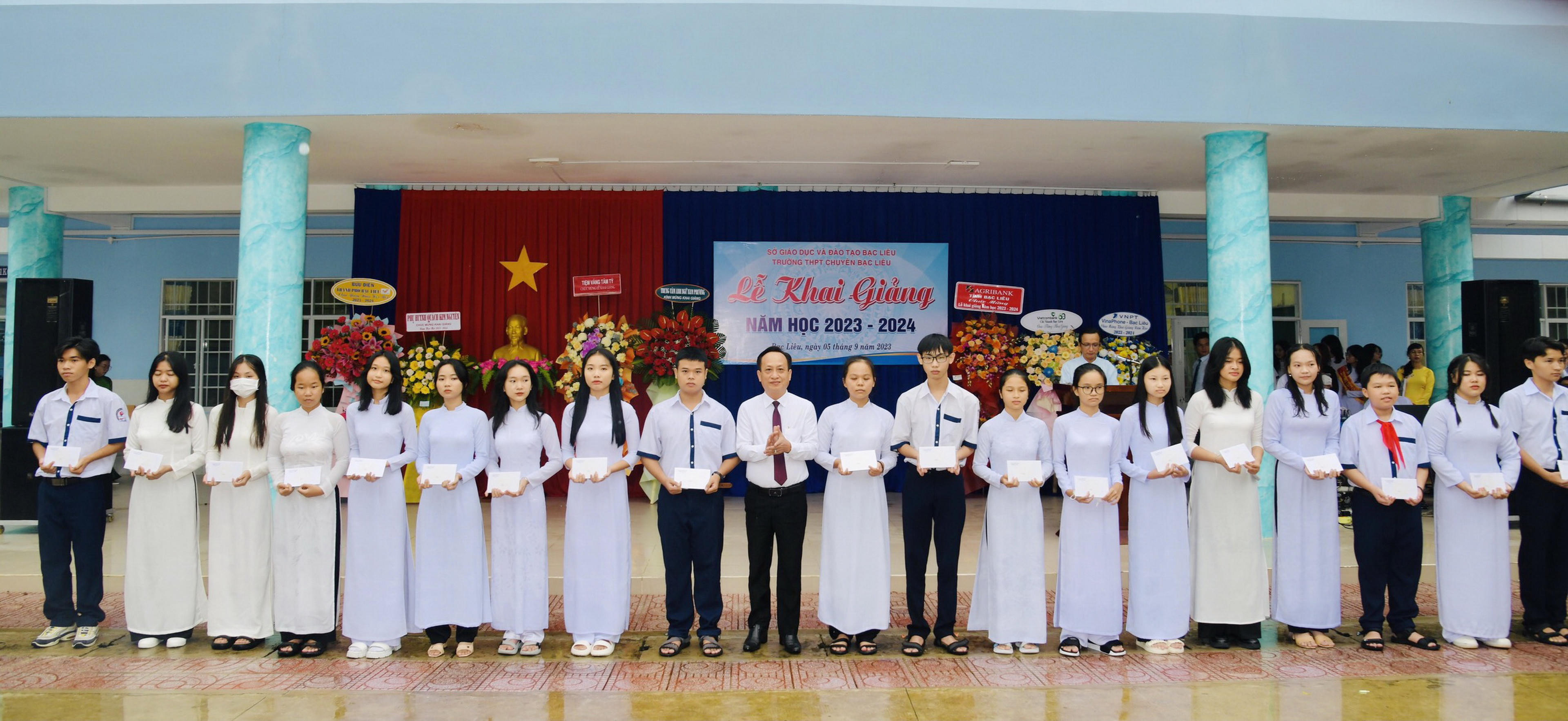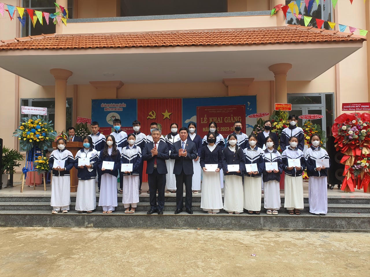 Tại lễ khai giảng, ông Tiêu Hồng Phúc đã trao 10 suất học bổng, trị giá mỗi suất 1 triệu đồng cho 10 em học sinh nghèo vượt khó. Các đơn vị, doanh nghiệp trong tỉnh cũng đã trao 62 suất học bổng, mỗi suất 500.000 đồng, động viên học sinh.