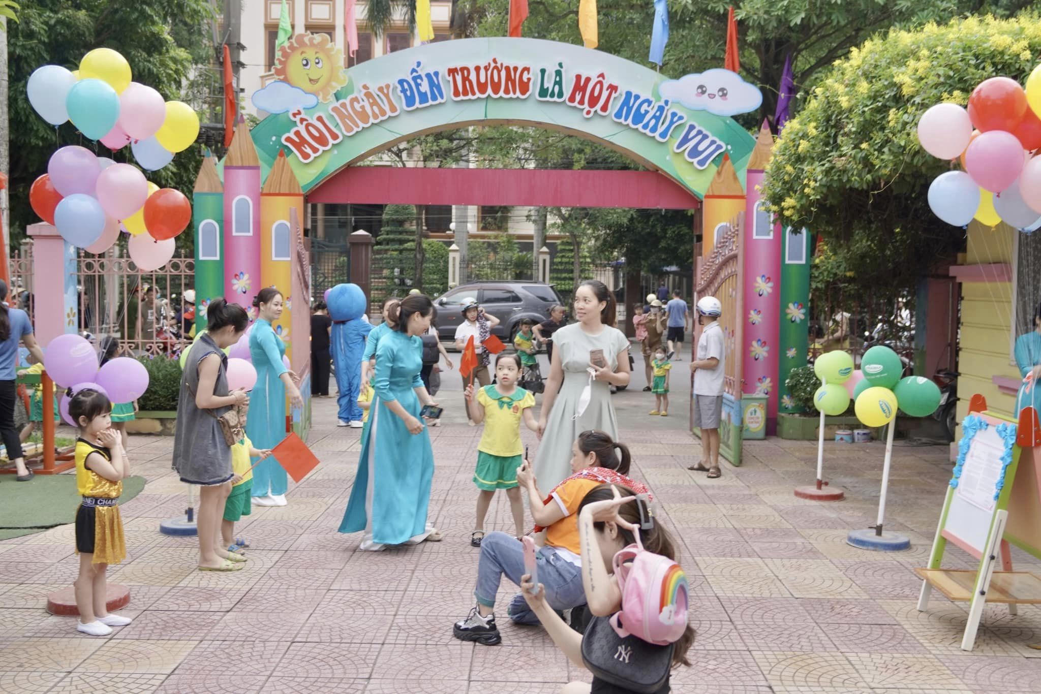 Không khí khai giảng năm học mới 2023-2024 tại điểm trường mầm non Thống Nhất. Ảnh: Bùi Tuấn |