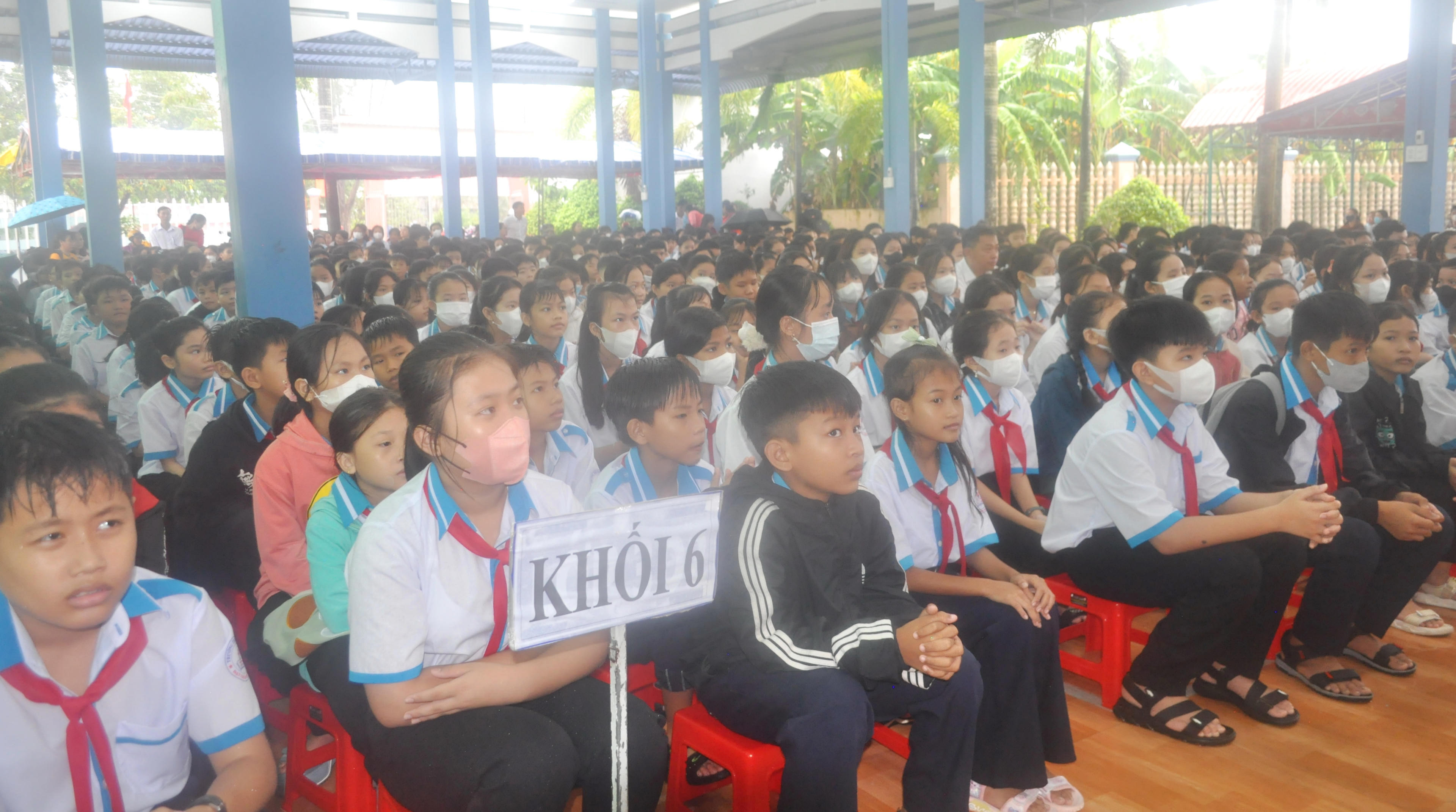 Dù mưa nhưng với sự chu đáo của nhà trường và phụ huynh, học sinh Trường THCS Hồ Thị Kỷ (xã Hồ Thị Kỷ, huyện Thới Bình) cũng có một lễ khai giảng trang nghiêm, ý nghĩa.