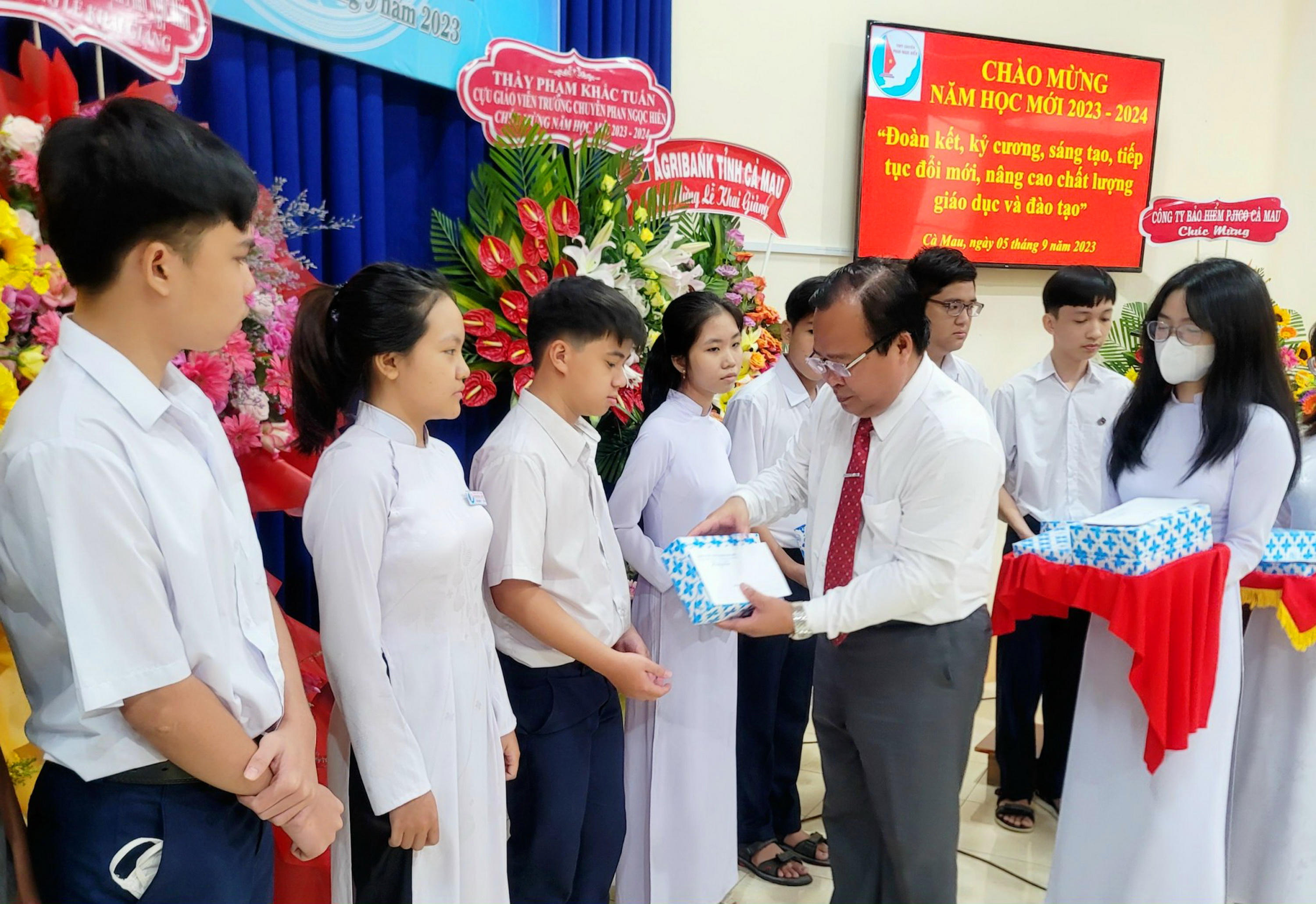 Nhân đầu năm học mới, Phó Chủ tịch UBND tỉnh Cà Mau đã trao học bổng và quà động viên học sinh Trường THPT Chuyên Phan Ngọc Hiển.