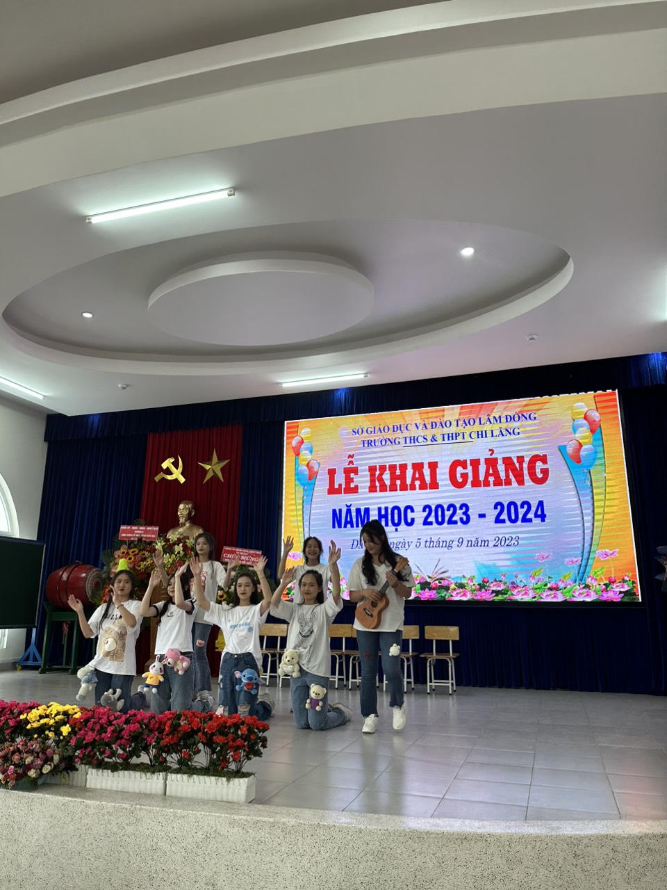 Lễ khai giảng tại hội trường của trường THCS&THPT Chi Lăng (TP Đà Lạt). |