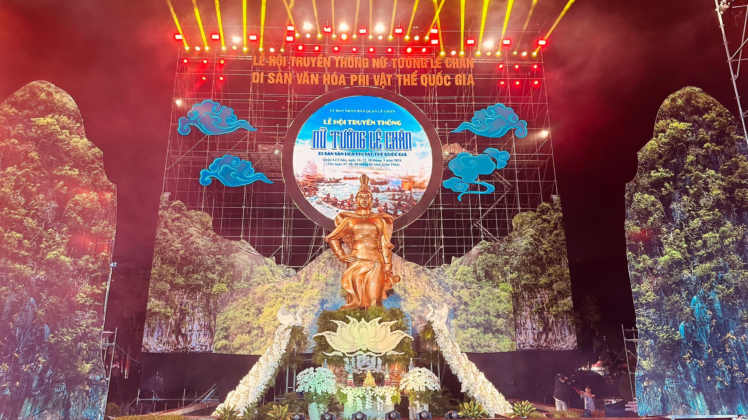 Phát biểu khai mạc Lễ hội, ông Nguyễn Hoàng Linh – Chủ tịch UBND quận Lê Chân cho biết, tự hào về lịch sử Hải Phòng từ ngàn xưa, vùng đất được khai thiên lập địa bởi Nữ tướng anh hùng, TP Hải Phòng ngày nay đã trở thành một TP Cảng, “Trung dũng - Quyết thắng” và đang chuyển mình vươn ra biển lớn.