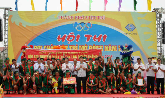 (PLO) - Trong khuôn khổ chương trình Giỗ tổ Hùng Vương - Lễ hội Đền Hùng năm Mậu Tuất 2018, ngày 22/4 (tức 7/3 âm lịch), tại hồ Công viên Văn Lang, Hội thi bơi chải thành phố Việt Trì mở rộng đã được tổ chức, tạo nên một điểm nhấn sinh động.