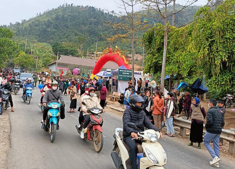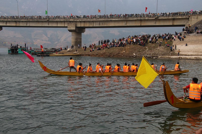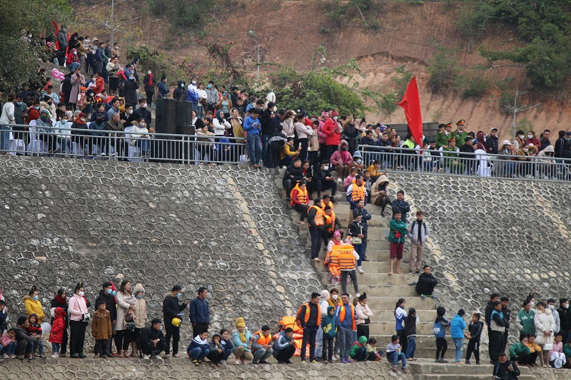 Rất đông người dân đổ về khu vực cầu Pá Uôn (cây cầu cao nhất Việt Nam) để chứng kiến, trải nghiệm Lễ hội đua thuyền.