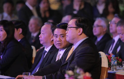 | Bí thư Thành ủy Hà Nội Hoàng Trung Hải và Chủ tịch UBND TP Hà Nội Nguyễn Đức Chung dự lễ khai mạc |
