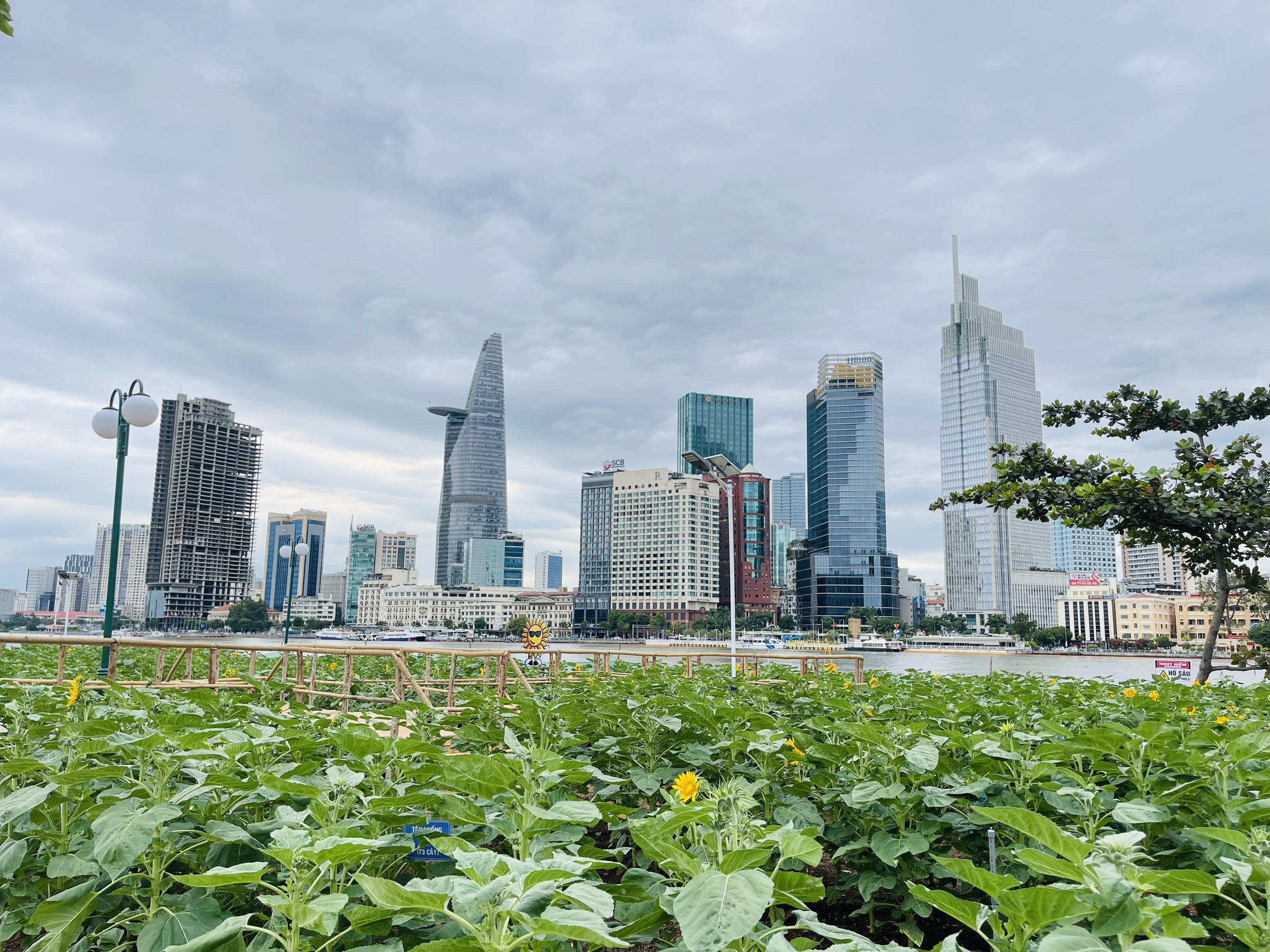 Công viên có "view" là mặt tiền sông, đối diện khu vực bến Bạch Đằng, công trường Mê Linh, phố đi bộ Nguyễn Huệ (quận 1) với hàng chục tòa nhà cao tầng được thắp sáng nhiều màu sắc mỗi đêm. |