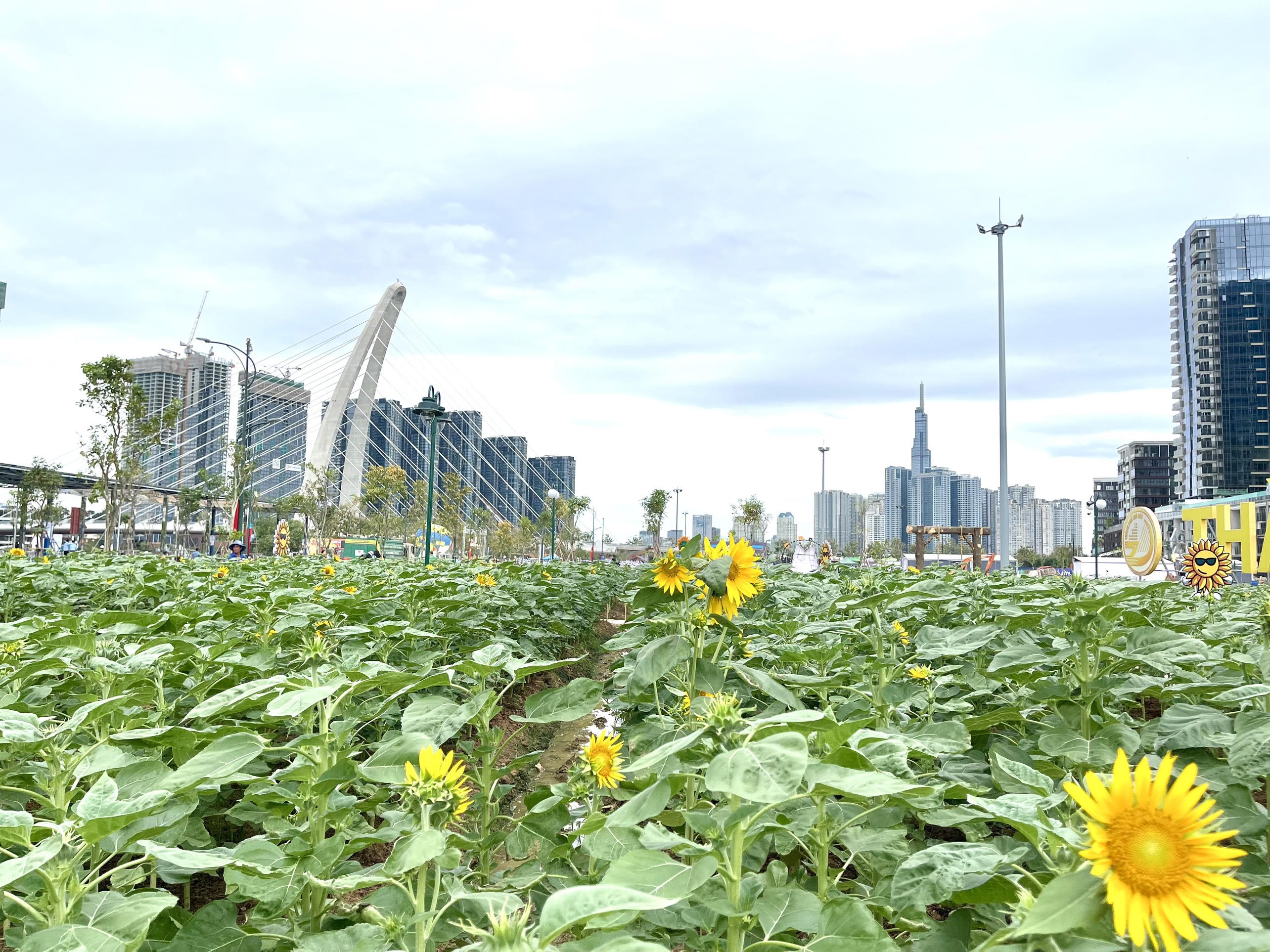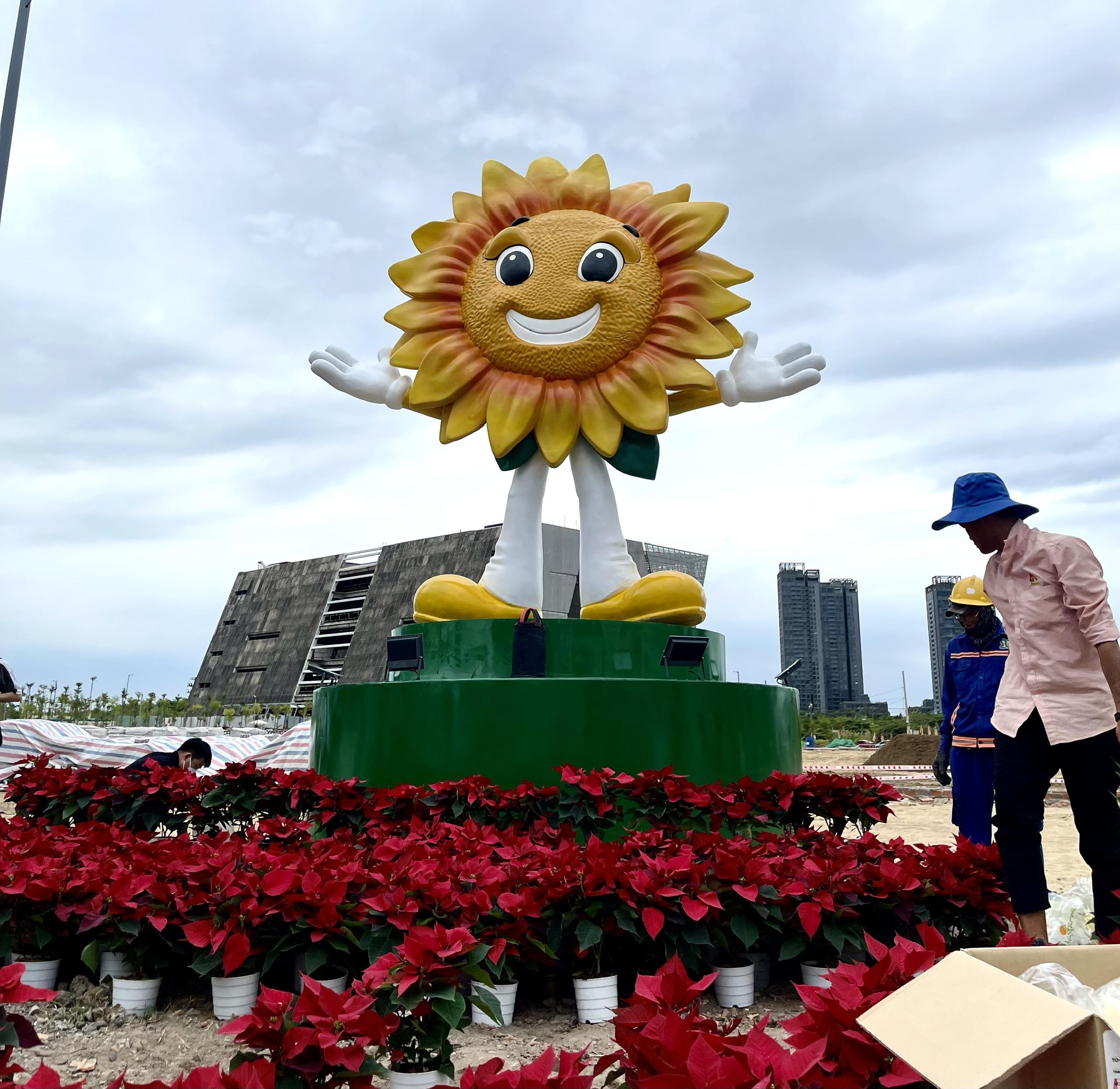 Linh vật Hoa hướng dương được đặt ở đầu công viên và có hệ thống chiếu sáng để người dân đến tham quan có thể checkin cả ngày lẫn đêm. |
