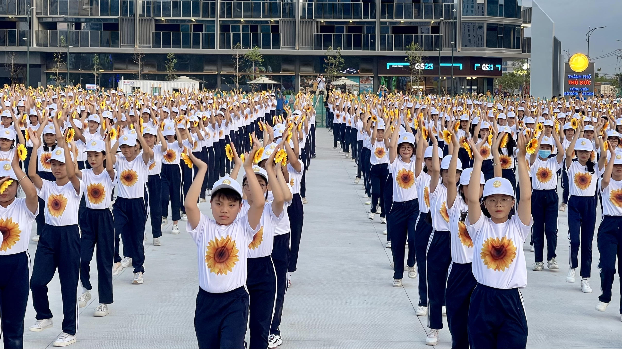 Màn đồng diễn của 3.000 học sinh đến từ các trường trên địa bàn TP Thủ Đức để chào đón lễ khánh thành Công viên bờ sông Sài Gòn. |
