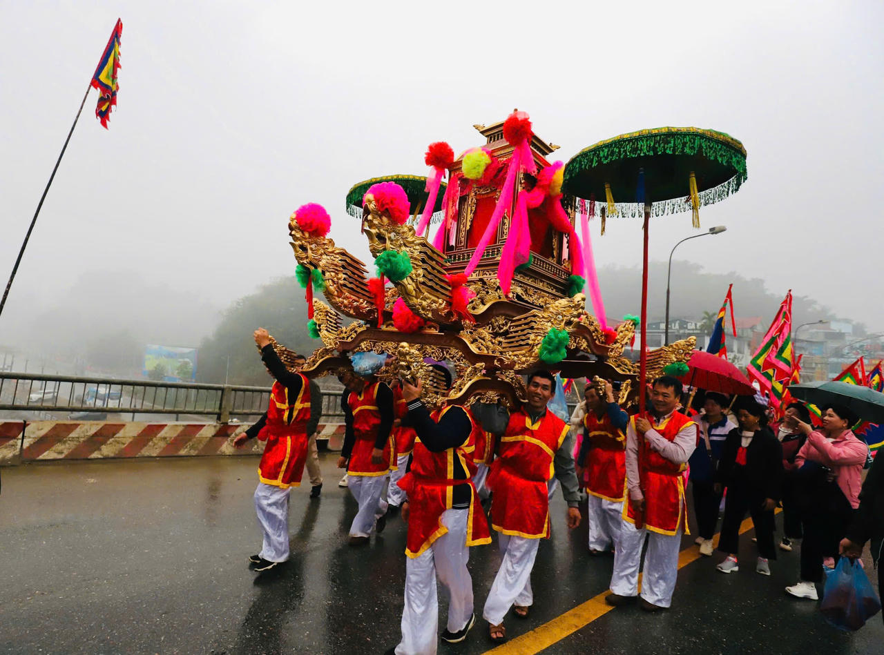 Nghi lễ rước kiệu từ đền Cô sang đền Ông (đền Bảo Hà). |