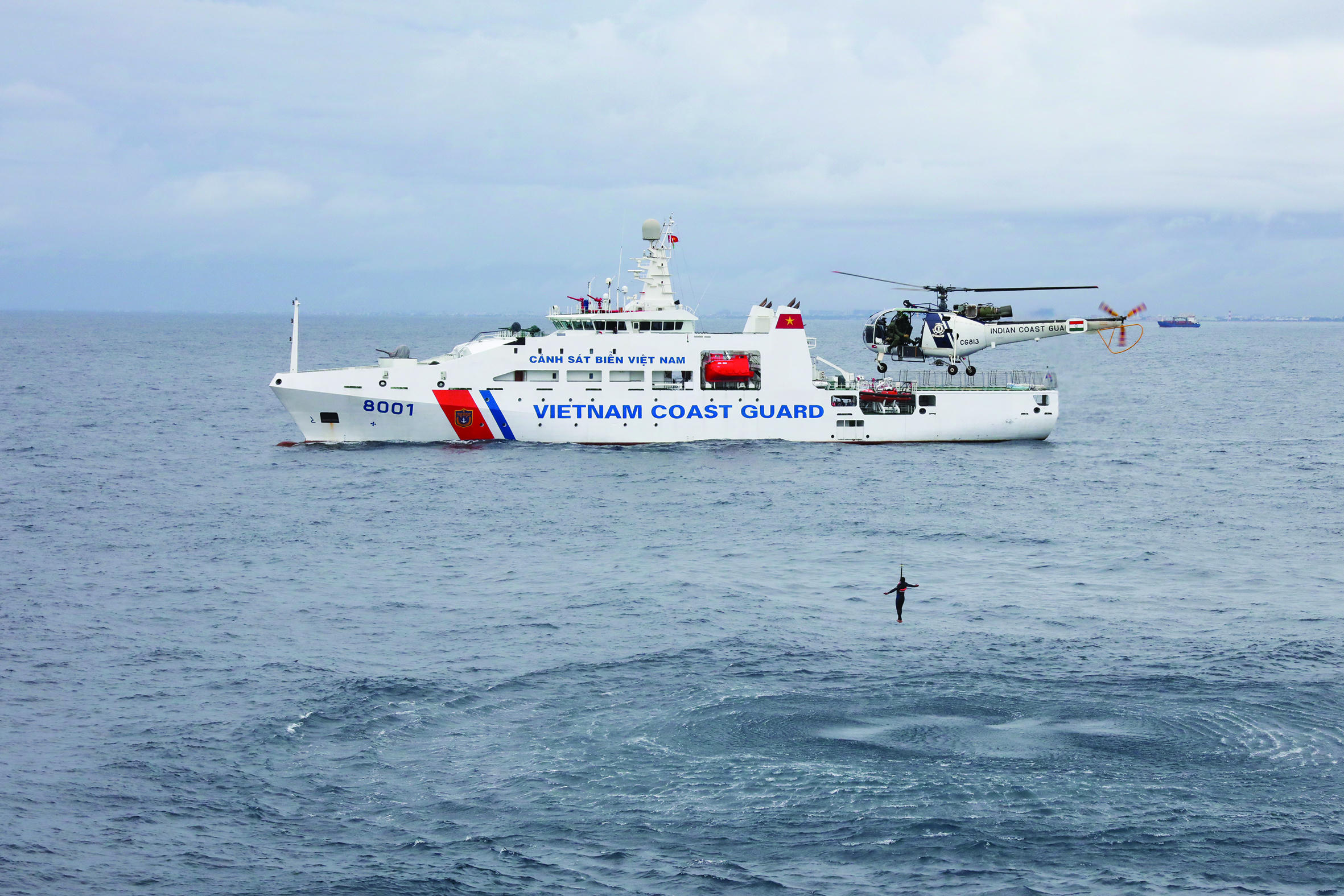 Cảnh sát biển Việt Nam và Cảnh sát biển Ấn Độ luyện tập chung về tìm kiếm cứu nạn trên biển. |
