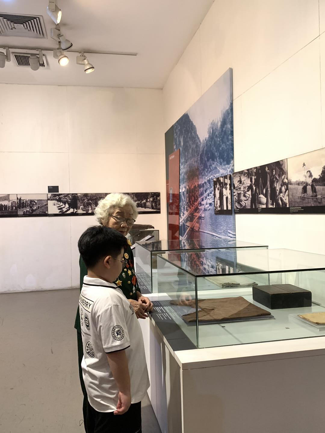 Bà Đỗ Thị Vấn, nữ quân y thuộc Đội điều trị 3 đến tham quan Bảo tàng Phụ nữ Việt Nam. |