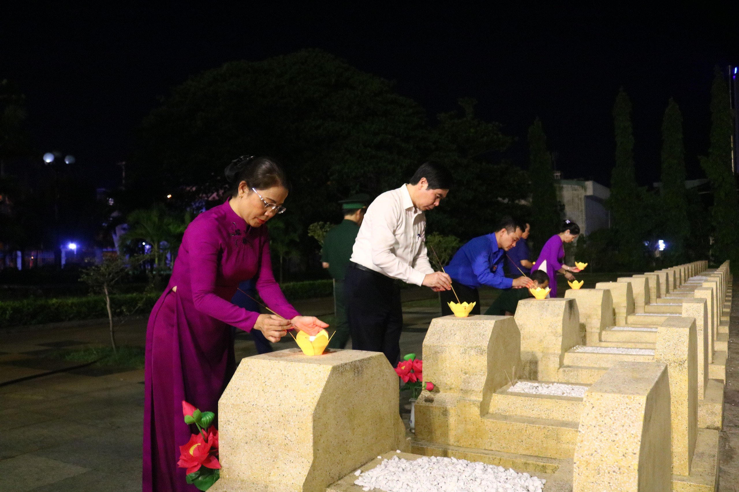 Lãnh đạo tỉnh Bình Định cùng các các bạn đoàn viên thanh niên thắp nến và dâng hương tại các phần mộ để tưởng nhớ công ơn của các liệt sĩ đã hy sinh vì sự nghiệp bảo vệ Tổ quốc. |