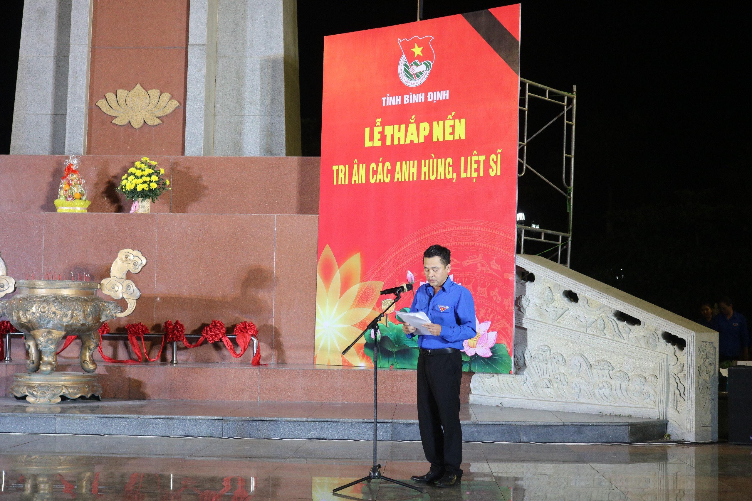 Phát biểu tại buổi lễ, anh Nguyễn Thành Trung - UVBCH TW đoàn, Bí thư Tỉnh đoàn Bình Định cho biết: Kỷ niệm 77 năm Ngày Thương binh - Liệt sĩ năm nay, các cấp bộ Đoàn trong toàn tỉnh đã tổ chức nhiều hoạt động ý nghĩa như Hành trình tri ân, Hành trình đến với địa chỉ đỏ, các hoạt động “đền ơn đáp nghĩa, uống nước nhớ nguồn”, thăm hỏi tặng quà các gia đình có công, tổ chức Bữa cơm tri ân, phục dựng các di ảnh Liệt sĩ, thiết kế infographic tuyên truyền các di tích lịch sử, điểm địa chỉ đỏ trên địa bàn tỉnh,… để tỏ lòng thành kính và biết ơn sâu sắc các thế hệ cha anh, các mẹ Việt Nam anh hùng, người có công với cách mạng và giúp cho thế hệ trẻ hiểu hơn về những chiến tích lịch sử trên địa bàn tỉnh.