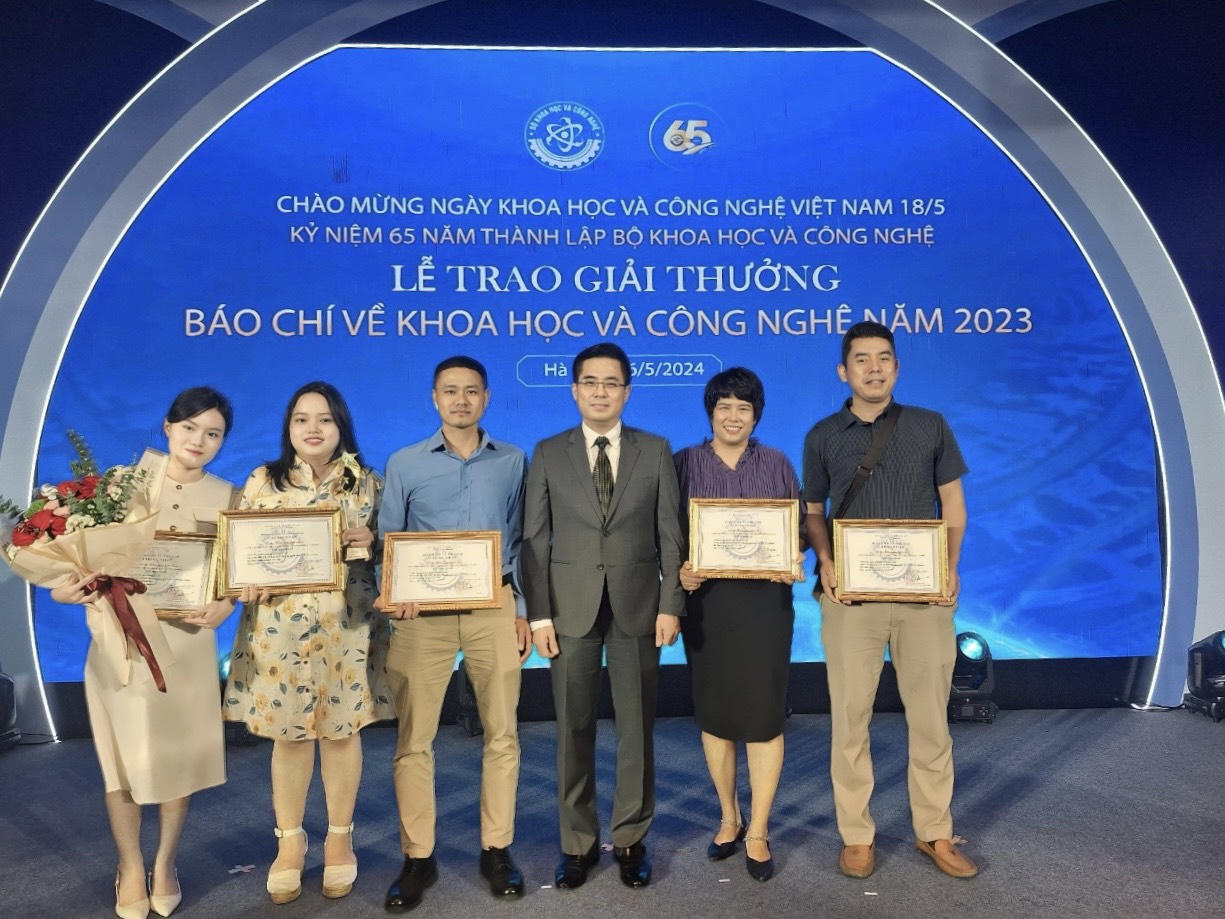 | Nhóm phóng viên Ban văn hóa - Xã hội và văn phòng đại diện Quảng Ninh nhận giải Khuyến khích giải thưởng Báo chí về Khoa học và Công nghệ năm 2023. |