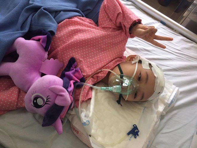 Chị Dương cho biết, thời điểm phát hiện bé Hải An mắc bệnh là tháng 9/2017. Những dấu hiệu bất thường như An bị méo mồm, hai mắt có hiện tượng song thị... nên gia đình đã nhanh chóng đưa em đi châm cứu. Dấu hiệu bệnh có chiều hướng đỡ hơn nhưng không khỏi hẳn. Khi đó, các bác sĩ khuyên chị Dương nên đưa con đi chụp chiếu để chữa trị tận gốc.