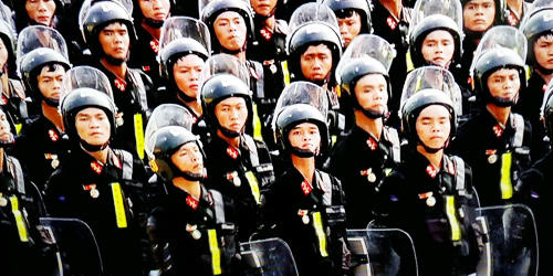 Lúc 8h, Khối công an tiến vào lễ đài, gồm sỹ quan an ninh, công an nhân dân, nữ cảnh sát giao thông, khối nữ chiến sỹ cảnh sát đặc nhiệm, lực lượng cảnh sát cơ động...