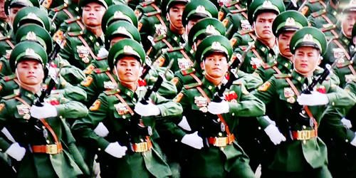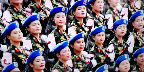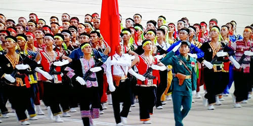 Sau đó lần lượt khối nam tự vệ, nữ tự vệ, nam dân quân các dân tộc, nữ dân quân các dân tộc... diễu hành.