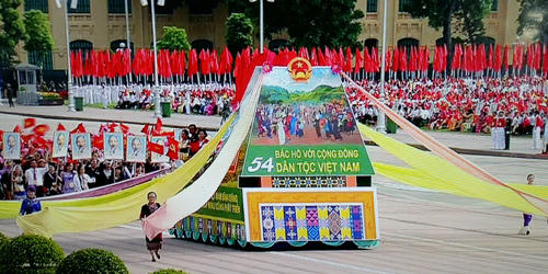 Tiếp đến là khối diễu hành các loại hình văn hóa phi vật thể của Việt Nam đã được UNESCO công nhận: Dân ca quan họ, Ca trù, hội Gióng, dân ca ví dặm Nghệ Tĩnh, nghệ thuật đờn ca tài tử Nam Bộ, không gian văn hóa cồng chiêng Tây Nguyên...