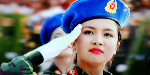Năm 1955, sau chiến thắng Điện Biên Phủ, cuộc duyệt binh diễn ra lần thứ 2 sau 10 năm, với những khẩu đại bác đã dội bão lửa xuống đầu quân Pháp ở lòng chảo Mường Thanh, những gương mặt như còn in nguyên khói thuốc súng của đội quân "chân đất, dép lốp" vừa làm nên chiến thắng Điện Biên Phủ "lừng lẫy năm châu, chấn động địa cầu".