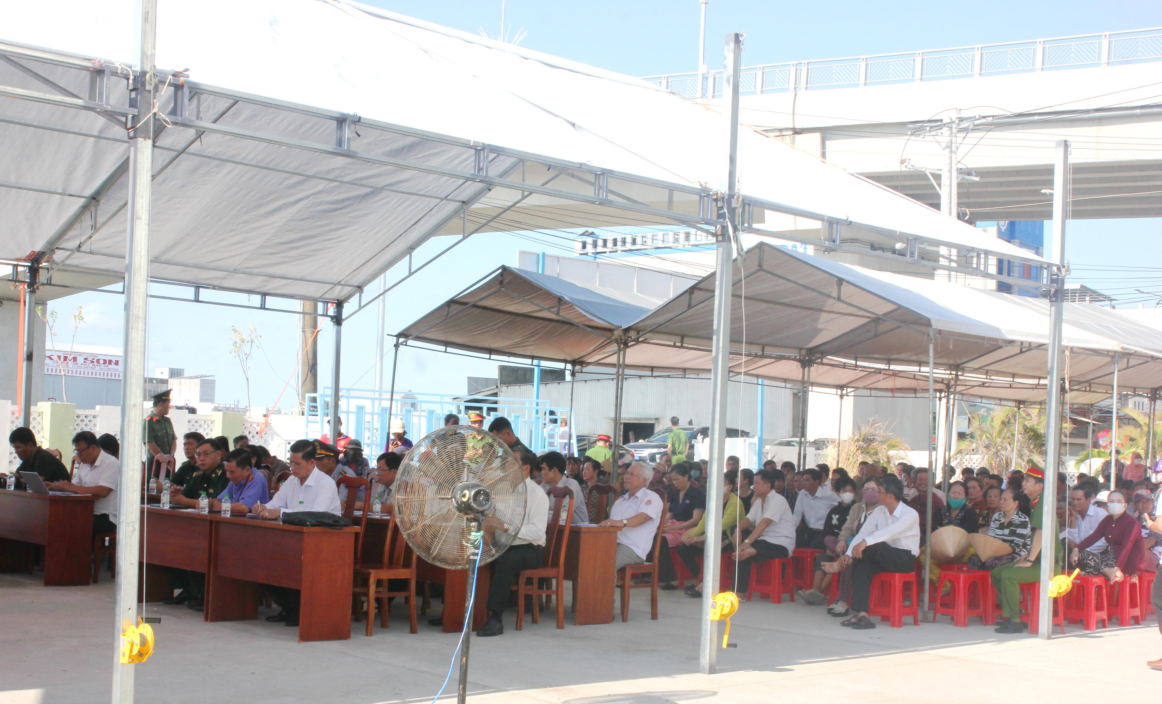 Người dân thị trấn Sông Đốc, huyện Trần Văn Thời (tỉnh Cà Mau) theo dõi phiên xét xử lưu động. |