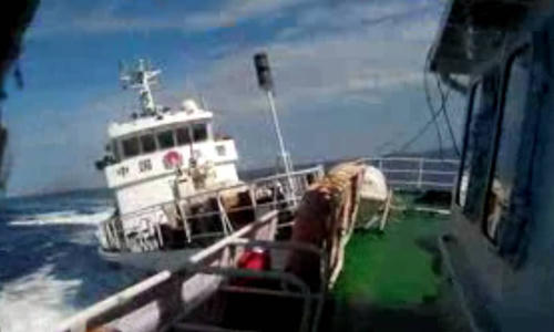 Tàu hải cảnh Trung Quốc lao thẳng vào tàu Việt Nam, cách nơi Trung Quốc đặt giàn khoan trái phép 10 hải lý. Ảnh: Bộ Ngoại giao cung cấp. |