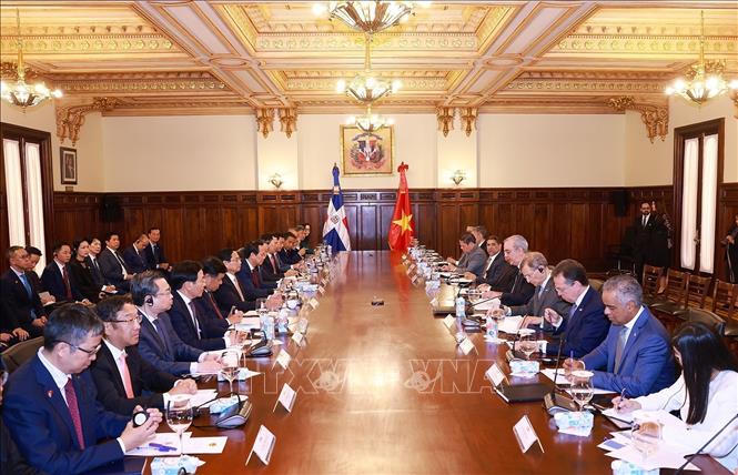 Hai bên trao đổi về tình hình mỗi nước; theo đó, Thủ tướng Chính phủ Phạm Minh Chính đánh giá tích cực những thành tựu kinh tế xã hội mà Cộng hòa Dominicana đạt được trong những thập kỷ gần đây, đặc biệt là việc duy trì tốc độ tăng trưởng kinh tế cao và không ngừng mở rộng, nâng cao vị thế của Cộng hòa Dominicana tại khu vực Mỹ Latinh và Caribe.
