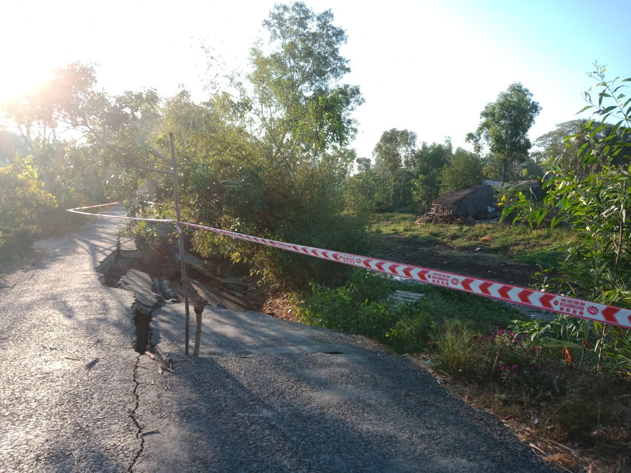 Ngay sau khi sụt lún đường giao thông, chính quyền địa phương đã nhanh chóng bố trí rào chắn cảnh báo nguy hiểm và hướng dẫn người dân, phương tiện (xe 2 bánh) lưu thông bằng cách đi vòng qua tuyến đường giao thông nông thôn rộng 1,5m đối diện kênh Cơi Năm.