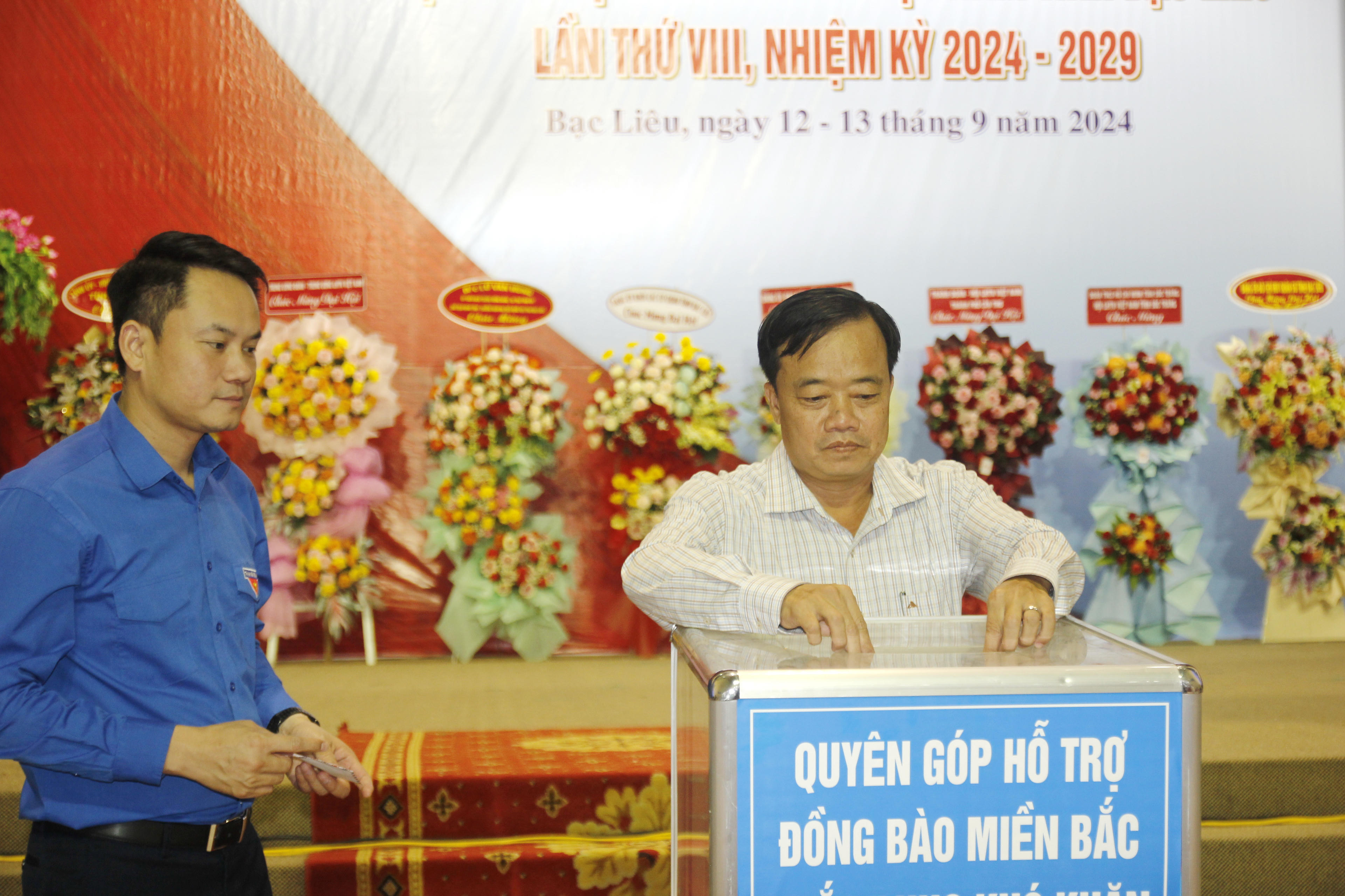 Lãnh đạo Trung ương Hội Liên hiệp Thanh niên Việt Nam, lãnh đạo tỉnh Bạc Liêu và Sở, Ban, ngành, đoàn thể tỉnh quyên góp hỗ trợ đồng bào Miền Bắc khắc phục khó khăn sau cơn bão số 3. |