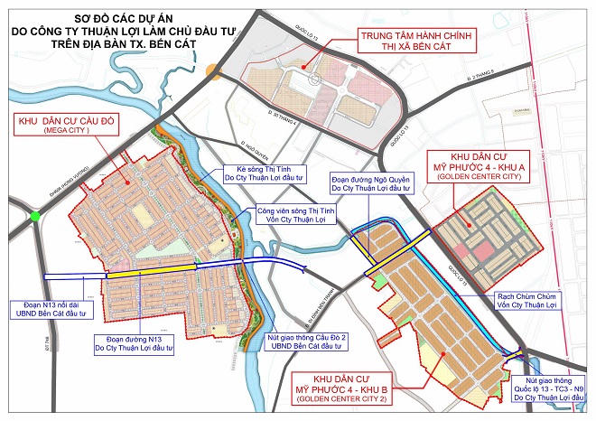 Được biết, trước đó, cũng tại khu vực này, Cty Thuận Lợi đã tự nguyện đề xuất và được cơ quan chức năng chấp nhận cho xây hai trục đường nối từ QL13 ra đường Ngô Quyền, chạy qua dự án Golden City 2 (còn gọi dự án Mỹ Phước 4 – khu B); tự xây cây cầu bắc qua rạch Chùm Chũm, nối dự án Mỹ Phước 4 – khu B ra nút giao QL13 – đường TC3 dẫn vào Bệnh viện Becamex.