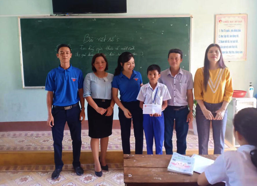Phía Huyện đoàn Triệu Phong và Hội đồng đội huyện đã đến thăm hỏi, biểu dương và trao quà cho 2 em Bảo và Anh để khích lệ tinh thần “Gương người tốt việc tốt”.