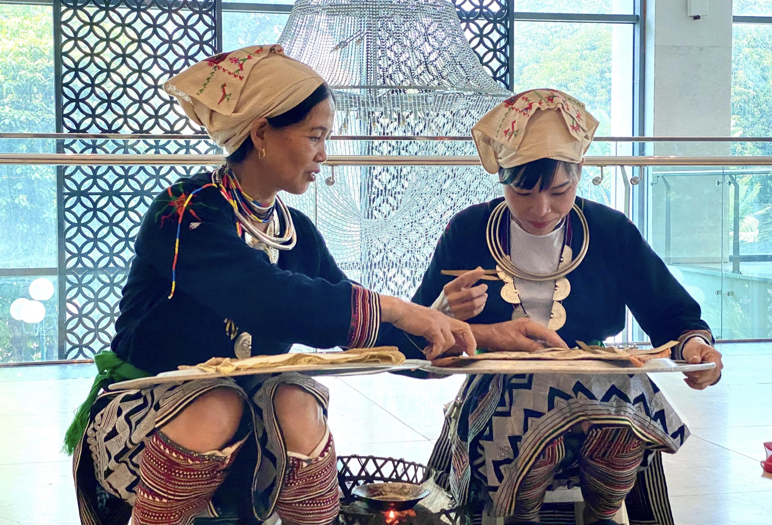 Những bộ quần áo được in thủ công bằng sáp ong của người dân tộc Dao Tiền - Tuyên Quang (Ảnh: Lê Hanh) |