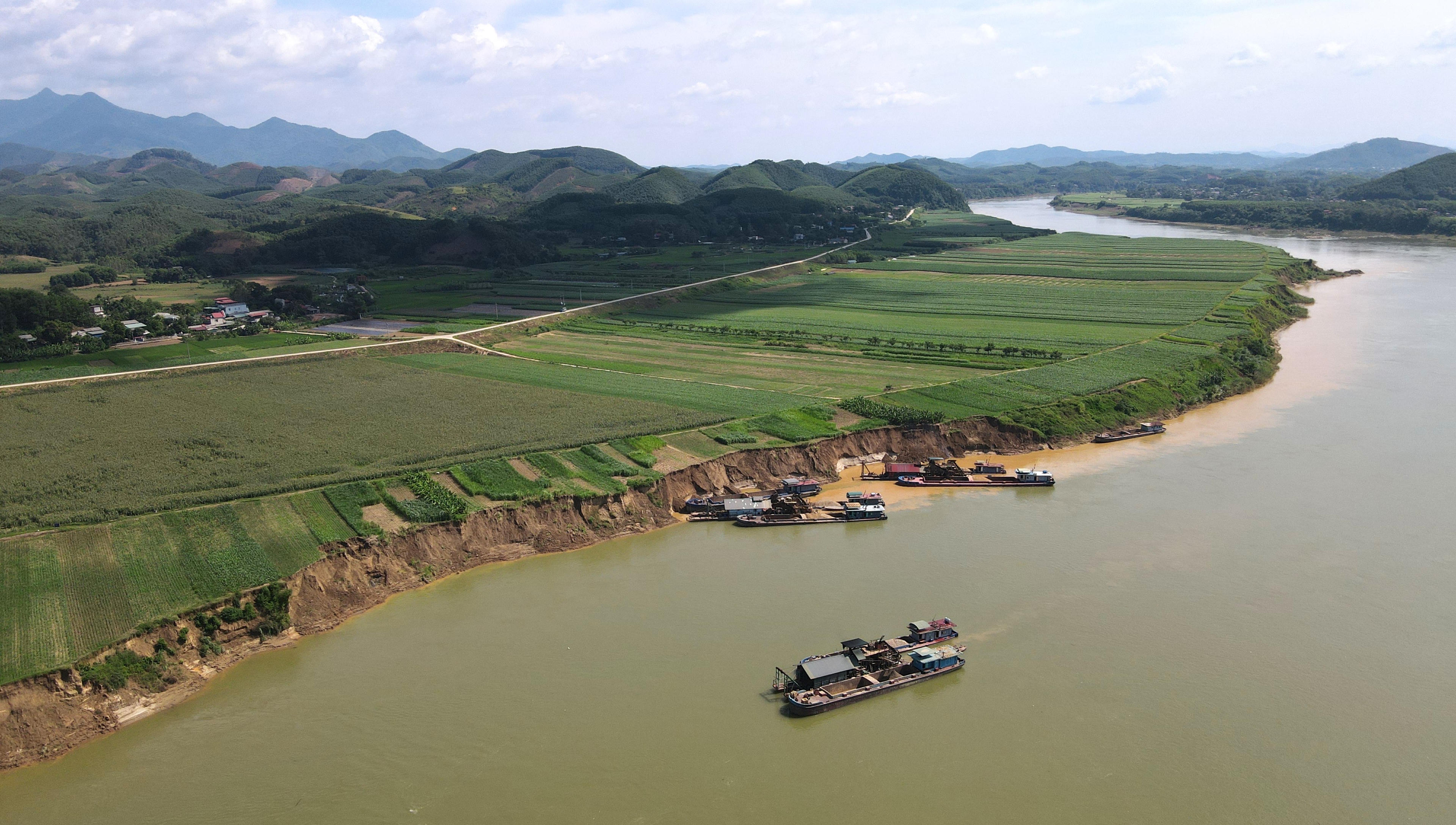Hình ảnh khai thác cát sỏi trên sông Lô, đoạn qua thôn Cây Xy, xã Cấp Tiến (Sơn Dương - Tuyên Quang) chiều 5/9/2023. Ảnh: Nhật Nguyên. |
