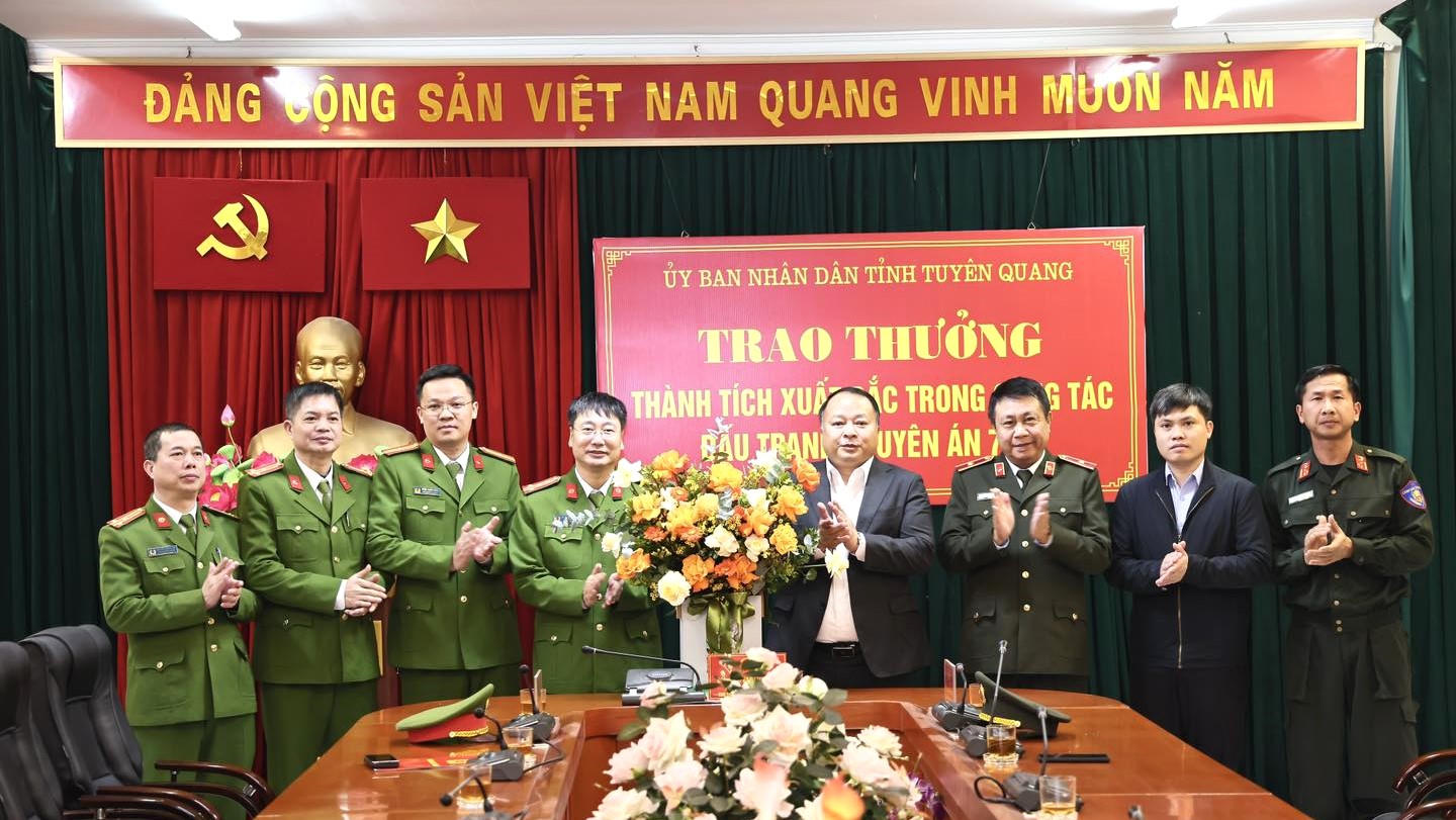Nhân dịp này, Chủ tịch UBND tỉnh Tuyên Quang đã trao thưởng 50 triệu đồng cho các lực lượng trực tiếp đấu tranh phá thành công chuyên án đường dây lừa đảo tại Campuchia.