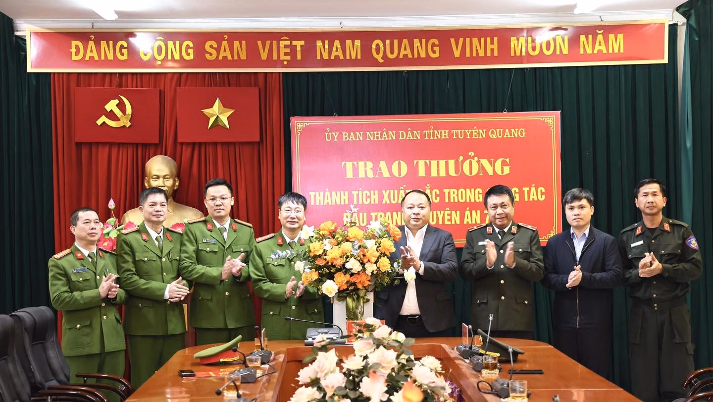 (PLVN) - Ghi nhận chiến công của các lực lượng phá thành công đường dây lừa đảo tại Campuchia bắt giữ 205 đối tượng, Chủ tịch UBND tỉnh Tuyên Quang biểu dương và "thưởng nóng" 50 triệu đồng.