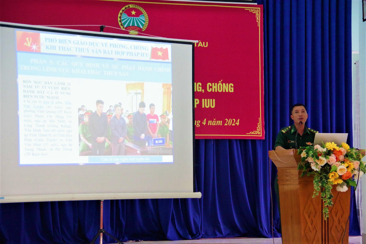 (PLVN) - BĐBP tỉnh Bà Rịa - Vũng Tàu mới phối hợp với Hội Nông dân tỉnh này tổ chức chương trình tuyên truyền chống khai thác hải sản không hợp pháp, không khai báo và không tuân thủ quy định (IUU) cho 300 ngư dân tại 3 huyện trong tỉnh gồm: Xuyên Mộc, Đất Đỏ và Long Điền.