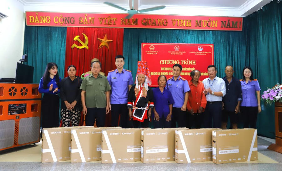 (PLVN) - Ngày 23/8, tại UBND xã Đồng Tâm, huyện Bình Liêu, Chi đoàn Viện Kiểm sát nhân dân tỉnh Quảng Ninh phối hợp với Viện Kiểm sát nhân dân huyện Bình Liêu, UBND xã Đồng Tâm, tổ chức tuyên truyền, phổ biến kiến thức pháp luật và tặng quà cho các hộ nghèo, hỗ trợ xây dựng chương trình nông thôn mới tại xã Đồng Tâm.