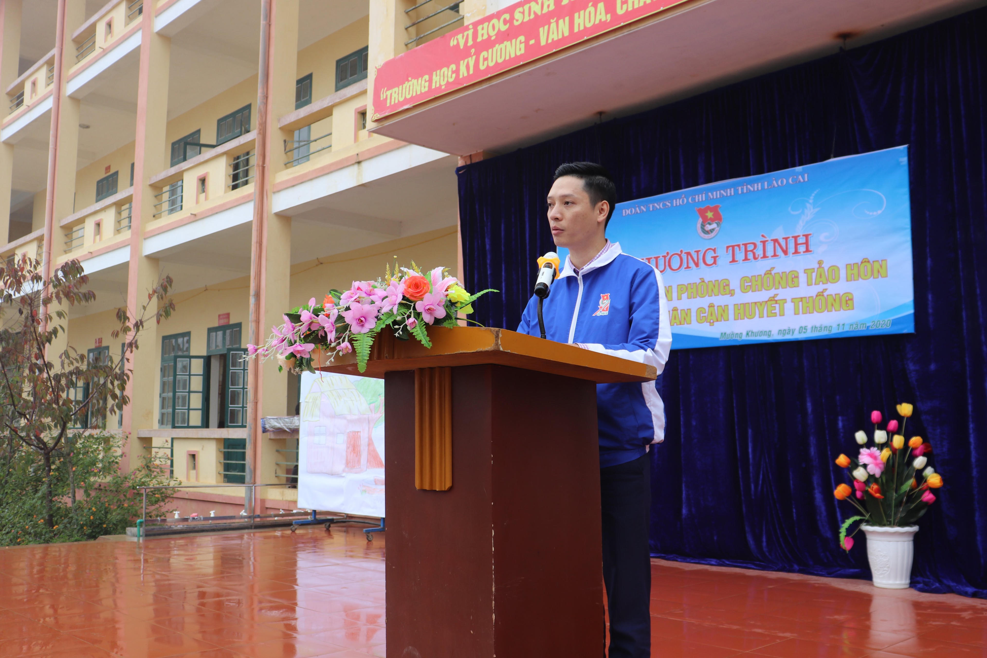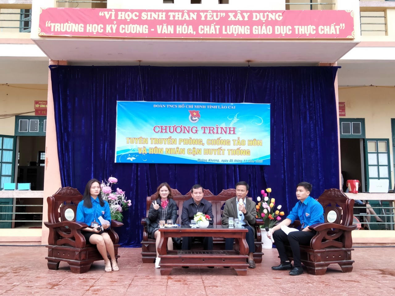 Chương trình tuyên truyền phòng, chống tảo hôn và hôn nhân cận huyết thống tại trường THPT số 3 Mường Khương gồm Hội thi với hình thức sân khấu hóa sẽ thực hiện qua 3 phần: Tiểu phẩm, Hùng biện và trả lời câu hỏi trắc nghiệm. Chương trình cũng tổ chức tọa đàm về các giải pháp đẩy lùi tình trạng tảo hôn và hôn nhân cận huyết thống trên địa bàn với phần hỏi đáp trực tiếp giữa các diễn giả và đoàn viên, thanh niên.