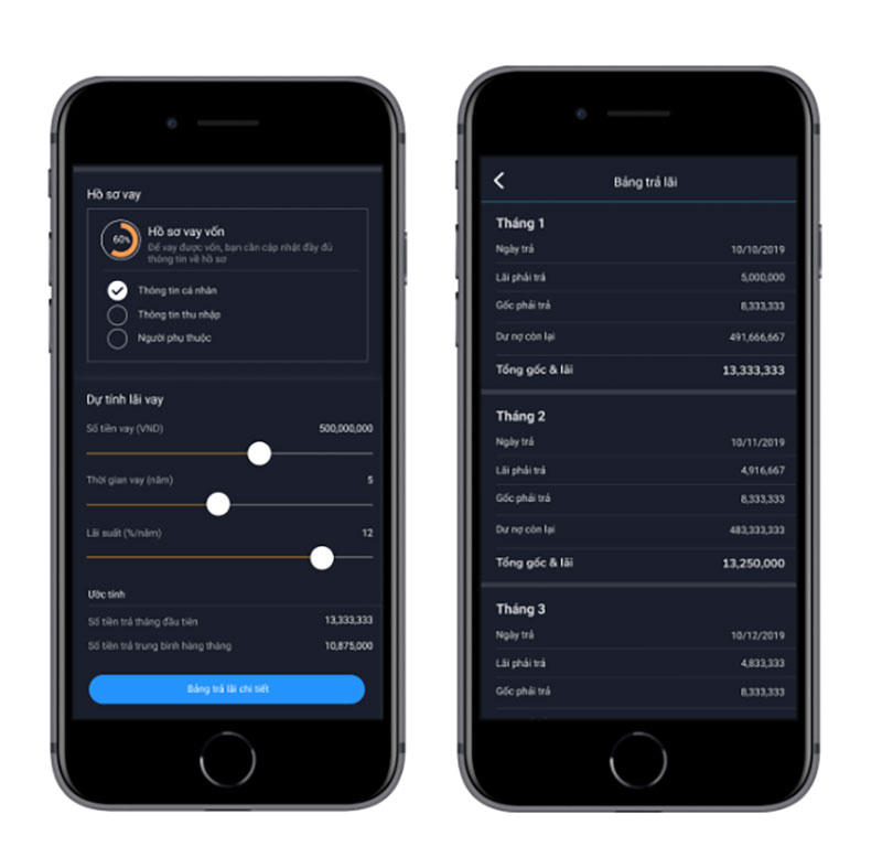 Sunshine App hiển thị dự tính lãi và chi tiết các khoản trả lãi