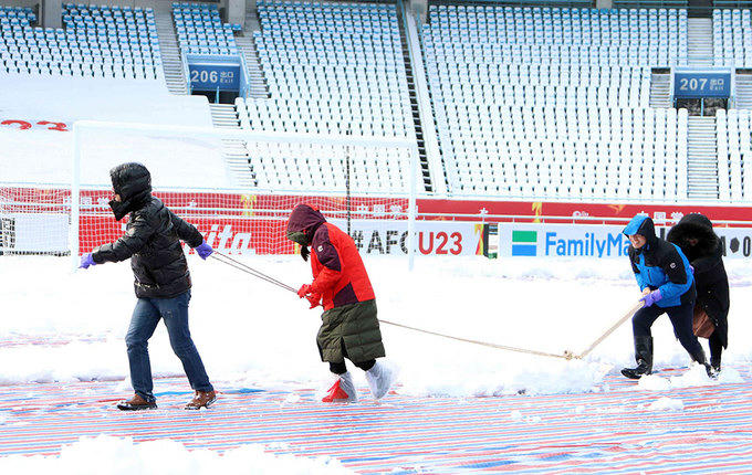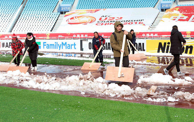 Tuyết ngừng rơi, sân Thường Châu được dọn dẹp chờ chung kết U23
