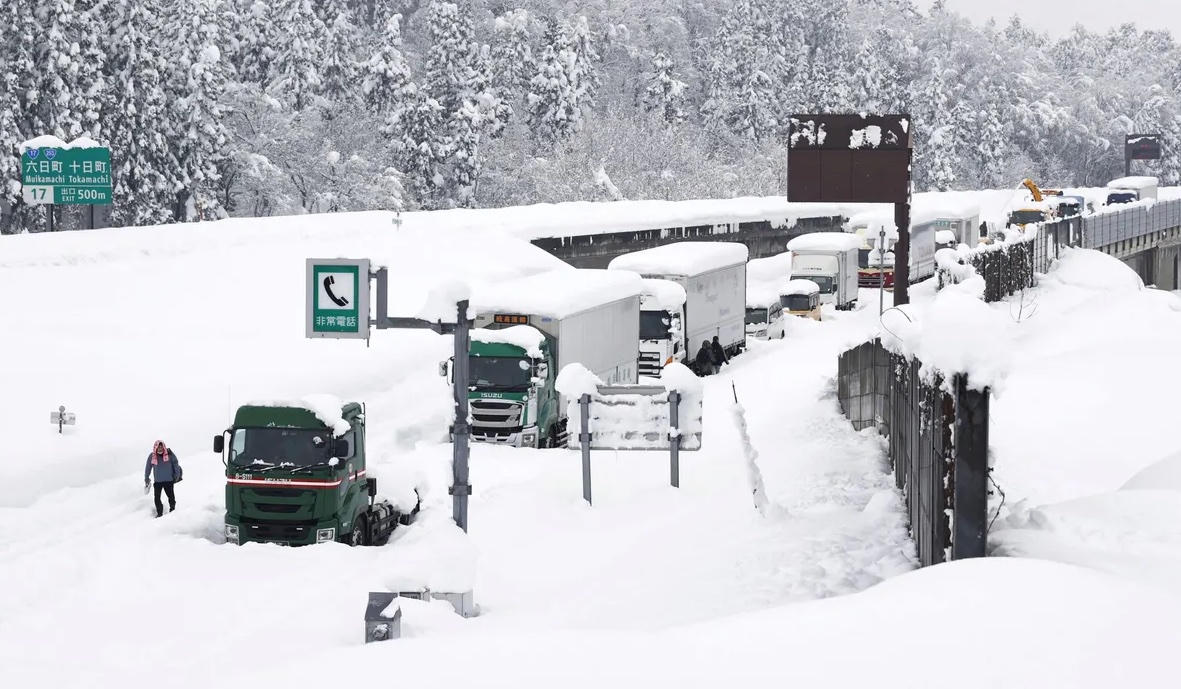 Các trận tuyết lớn từ cuối tuần trước rơi xuống nhiều vùng phía bắc Nhật Bản, khiến hàng trăm phương tiện kẹt trên đường cao tốc, dịch vụ giao hàng bị trì hoãn.
