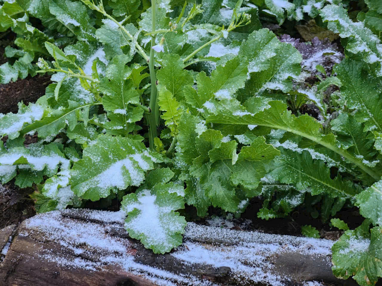 Khoảng 14h15 cùng ngày, tuyết bắt đầu rơi phủ lớp mỏng lên cây cối và đồng ruộng.