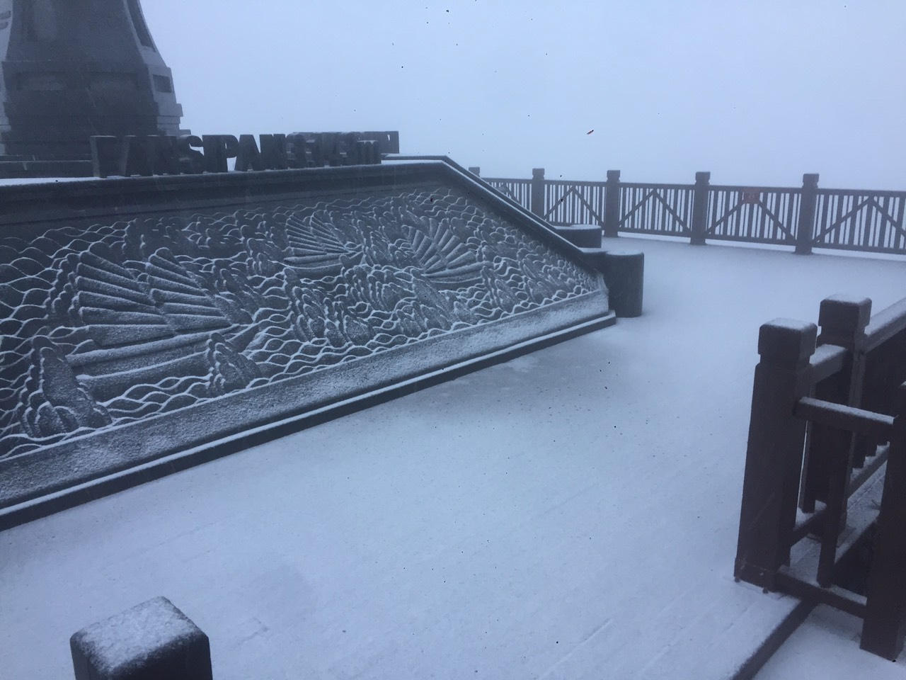 Sáng sớm nay (28/12), do ảnh hưởng từ đợt không khí lạnh tăng cường, nhiệt độ đỉnh Fansipan xuống dưới âm 1 độ C, xuất hiện mưa tuyết dày. Trận mưa tuyết bắt đầu từ khoảng 5h sáng và kéo dài suốt 3 tiếng. Hiện nay tuyết vẫn rơi dày và nhuộm trắng đỉnh Fansipan từ độ cao 2.800 m đến 3.143 m.