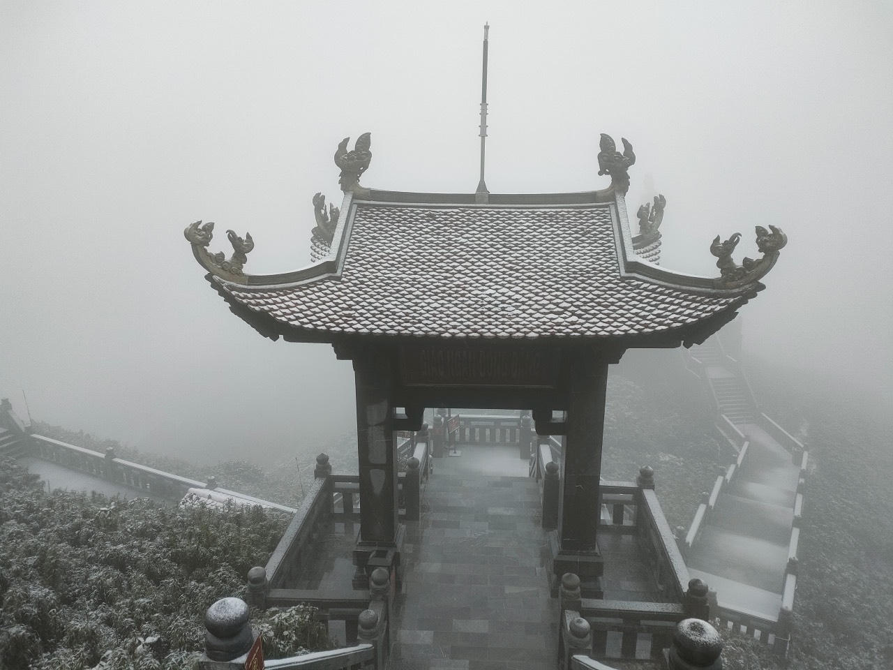 Đặc biệt tuyết rơi dày phủ trắng quần thể tâm linh Fansipan mang dáng dấp chùa Việt cổ, |