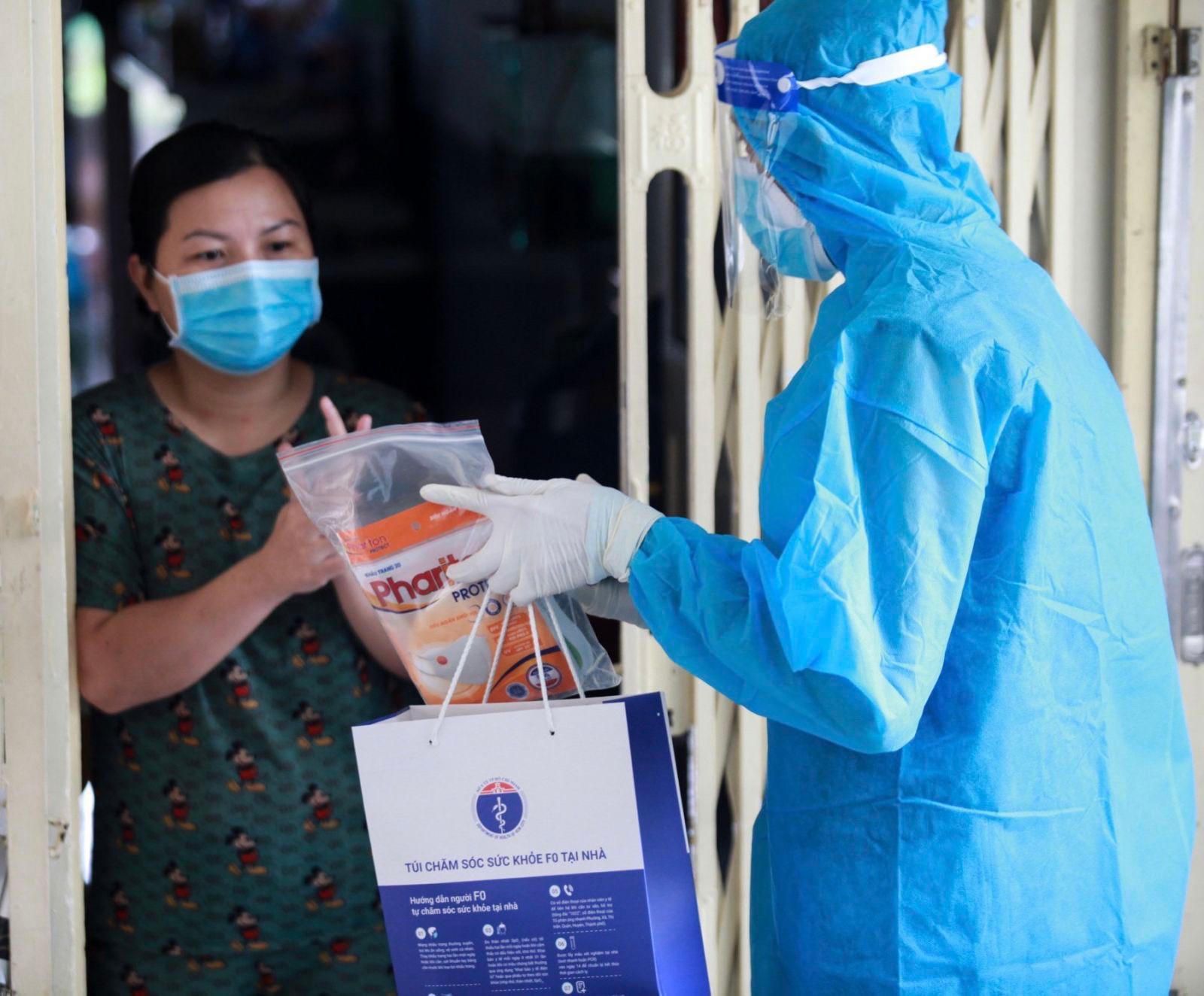 "Chúng tôi đã phát động rất nhiều chương trình trao túi thuốc và túi lương thực, thực phẩm để các tình nguyện viên không quản mưa nắng, nguy cơ lây nhiễm vào sâu trong tâm dịch phát đến tay bà con gặp khó khăn.